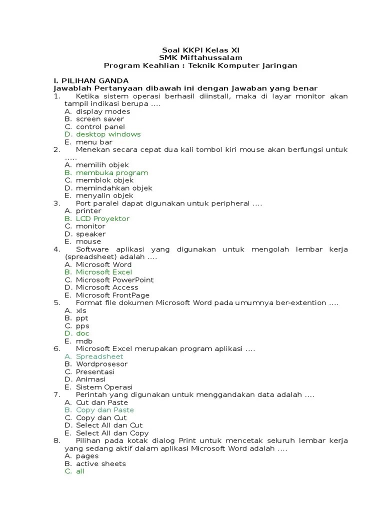 Kkpi kelas x semester 2 soal uas kkpi kelas x beserta jawabannya . Nah pada kesempatan kali ini kakak ingin membagikan beberapa contoh soal . Pilihlah jawaban a, b, c, d atau e yang paling benar dengan memberikan tanda silang (x) pada lembar jawaban yang telah disediakan ! Jangan memilih judul baris atau kolom (1, 2, 3. Berikut pilihan ganda dan jawabannya: Ikon "save", "redo", dan "undo" merupakan bagian menu dari … Soal kkpi kelas xi a. By umar danny post a comment. Contoh soal kkpi kelas xi semester 2 pilihan ganda dan jawabannya ~ bagian 9 (kesembilan). Berikut ini yang bukan termasuk kelompok program microsoft office adalah a. Buat buku kerja atau lembar kosong. Toolbar yang muncul secara default di jendela excel adalah toolbar. Berilah tanda silang (x) didepan huruf a,b atau c didepan jawaban yang benar !